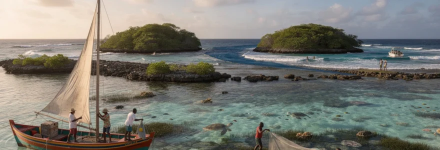 Dans ce paysage insulaire, les pratiques traditionnelles – de la construction navale créole aux techniques de pêche au filet – façonnent encore aujourd’hui l’identité des communautés littorales. De nombreux capitaines qui vous emmènent aux fonds blancs ont d’ailleurs appris la mer bien avant le tourisme, au contact des anciens. En embarquant avec eux, vous ne traversez pas seulement un lagon : vous remontez aussi le fil d’une histoire maritime, faite d’ingéniosité, d’adaptation et de transmission orale.