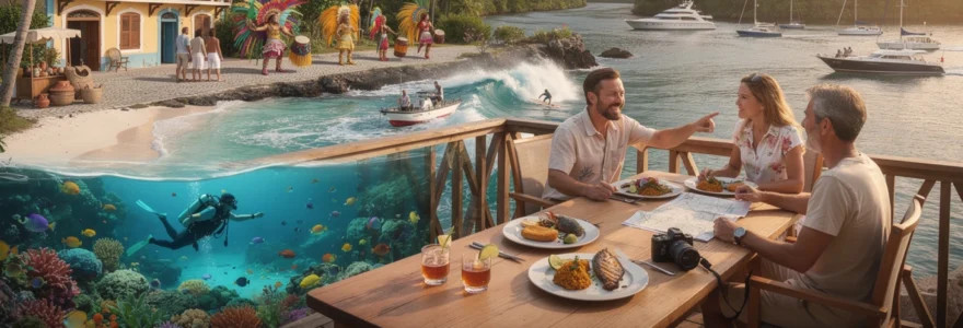 Les clubs de plongée locaux proposent des sorties encadrées pour tous les niveaux, du baptême à la plongée profonde. Beaucoup de voyageurs choisissent d’alterner entre snorkeling dans des anses confidentielles et plongées plus techniques sur épaves ou récifs externes. Les Saintes offrent ainsi le compromis idéal entre authenticité insulaire — avec leurs petites maisons de pêcheurs et leur ambiance de village — et activités nautiques haut de gamme. Pour les passionnés, organiser un séjour multi-spots entre Réserve Cousteau et Saintes permet de découvrir la diversité des fonds marins guadeloupéens en un seul voyage.